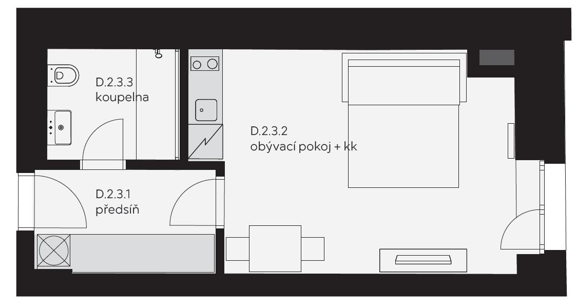 Byt 1+kk 31,5m2 D.2.03 v areálu Nuselského pivovaru