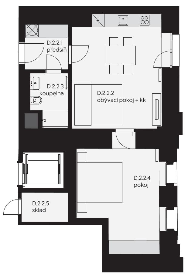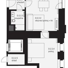 Byt 2+kk 52,67m2 D.2.02 v areálu Nuselského pivovaru