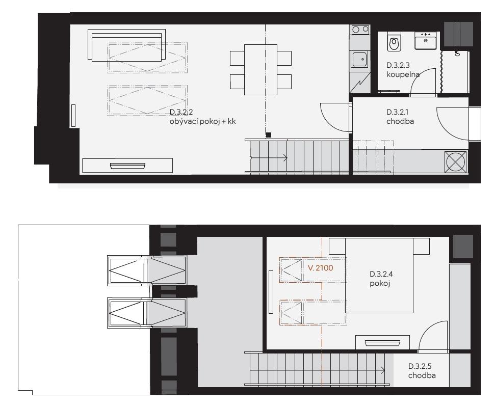 Byt 2+kk 64,8m2 mezonet D.3.02 v areálu Nuselského pivovaru