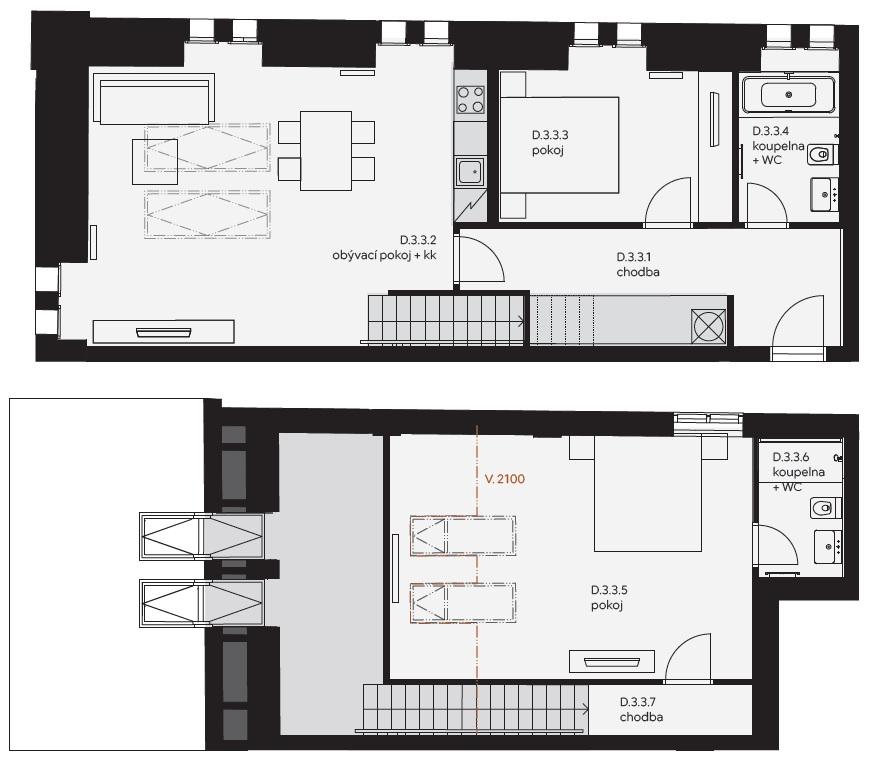Byt 3+kk 102,05m2 mezonet D.3.03 v areálu Nuselského pivovaru