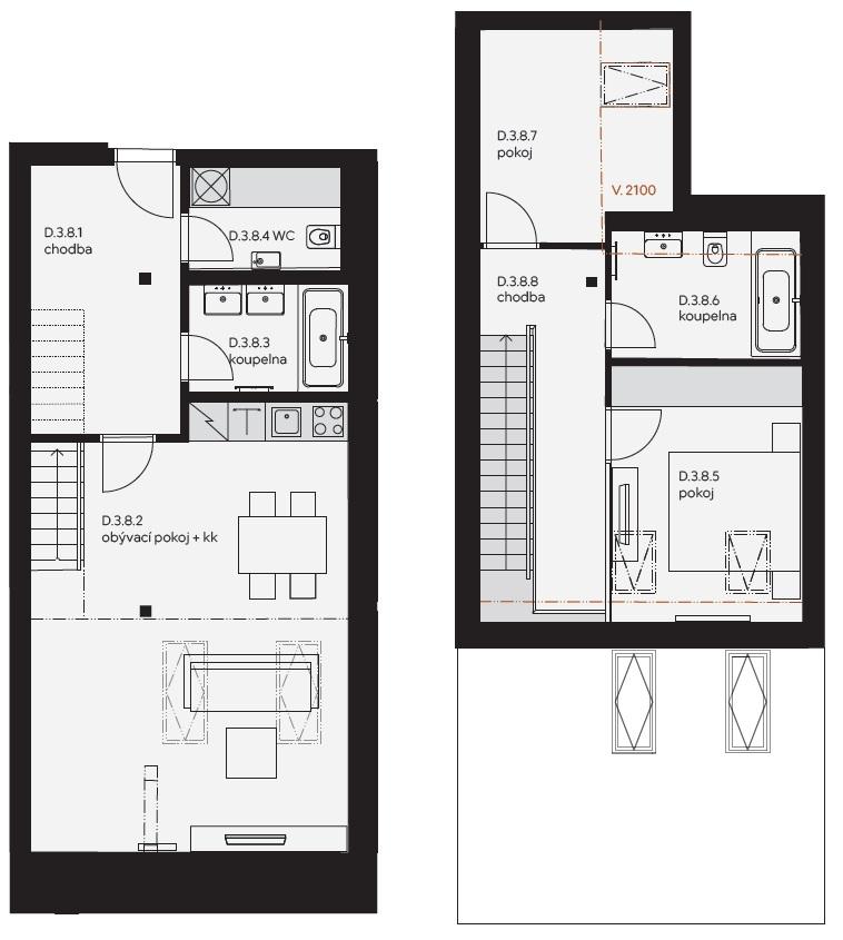 Byt 3+kk 89,62m2 mezonet D.3.08 v areálu Nuselského pivovaru