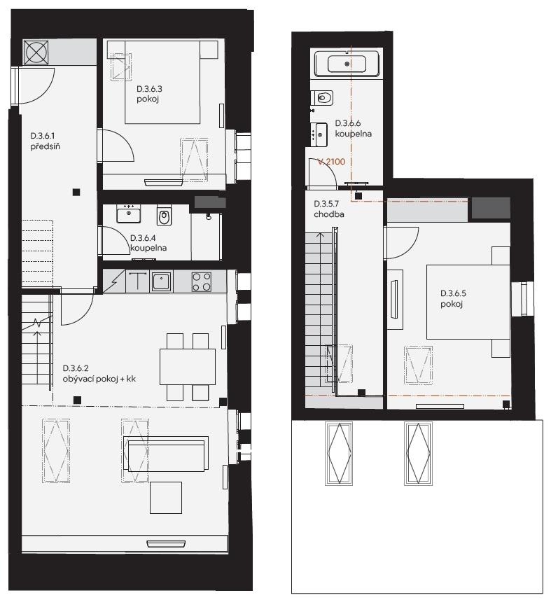 Byt 3+kk 93,24m2 mezonet D.3.06 v areálu Nuselského pivovaru
