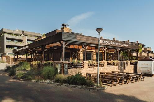 Restaurace nabízí vnitřní prostory pro hosty i venkovní posezení s výhledem na jezero, což výrazně zvyšuje atraktivitu podniku během letní sezóny. Poloha u vody vytváří jedinečnou atmosféru, která sama o sobě funguje jako silný marketingový prvek.